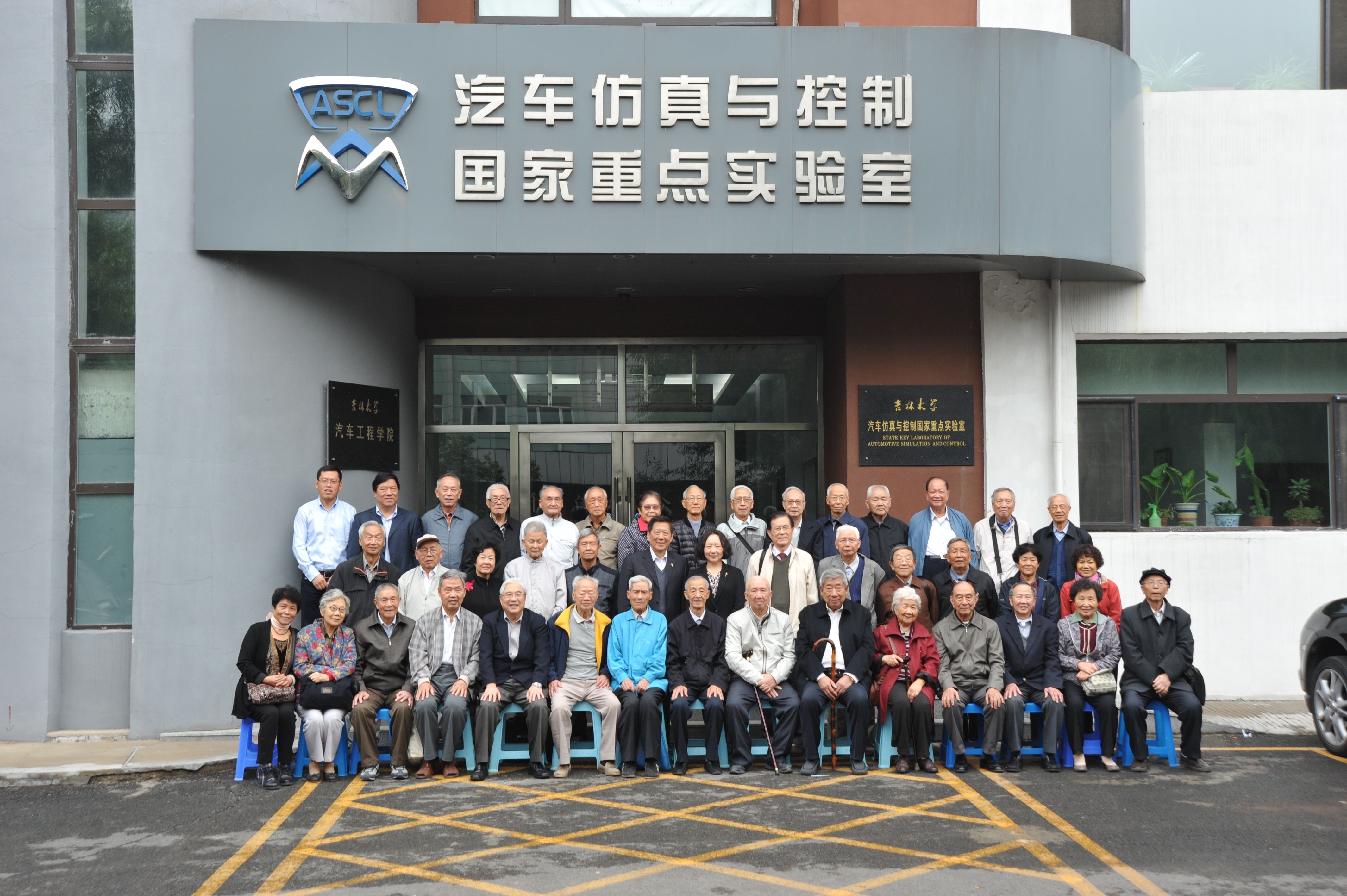 座谈结束后,老员工们在公司门前合影留念并步行参观了校园、汽车仿真与控制国家重点实验室、汽车实验室、内燃机实验室等。