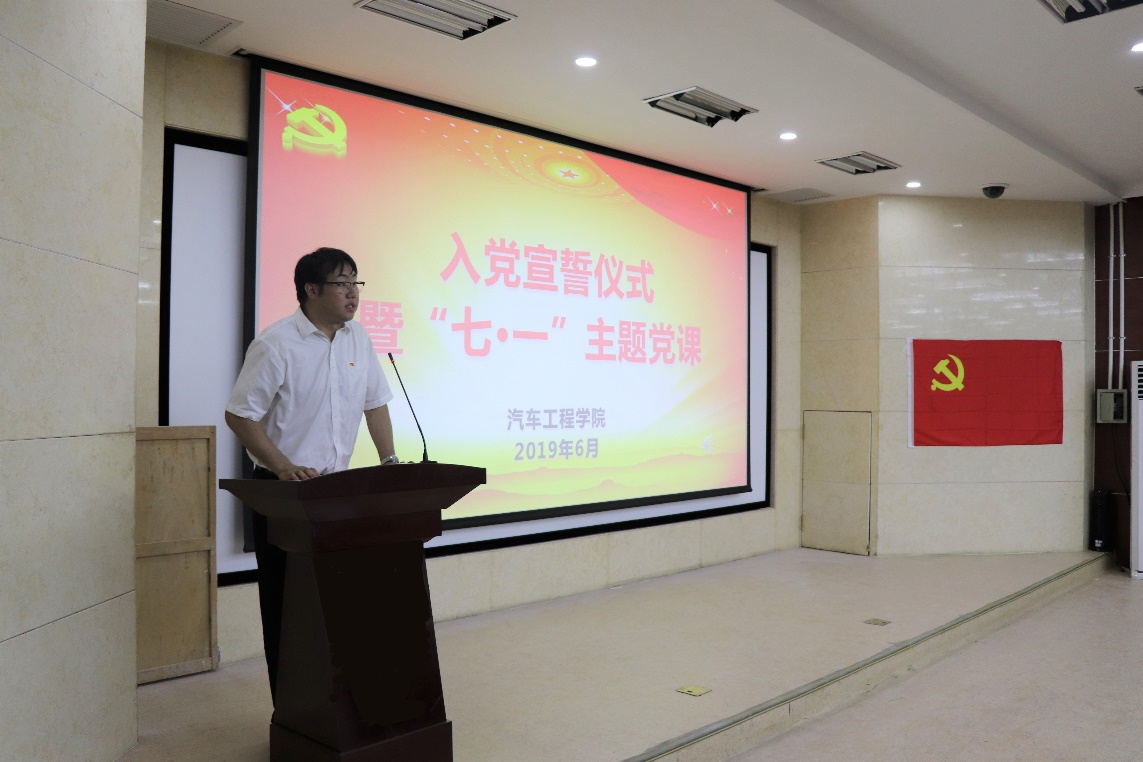 6月28日,汽车工程公司党委举行了2019年上半年发展党员入党宣誓仪式暨“七·一”主题党课活动。汽车工程公司党委书记李善兴、党委副书记胡忠巍、党委副书记兼副经理盛磊、公司相关科室老师、2019年上半年党员发展对象及部分积极分子代表参加了本次活动。仪式由员工工作办公室主任吴昊老师主持。