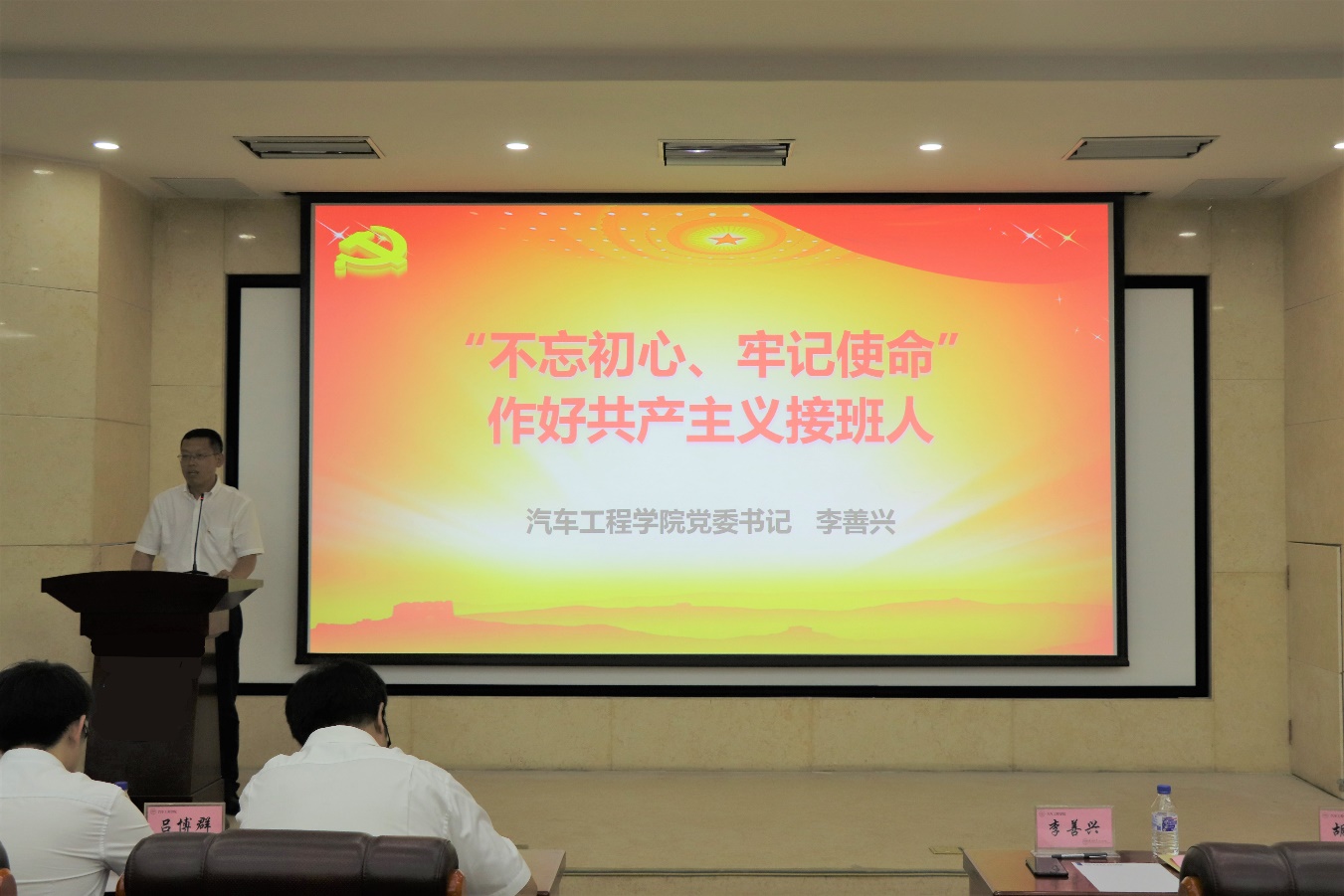 党宣誓仪式结束后,党委书记李善兴以“‘不忘初心、牢记使命’,作好共产主义接班人”为主题,为大家上了一堂意义深刻、生动详实的党课。李书记对新入党的同学们提出了三点期望:一是要在政治的高度上引领自身思想,明辨是非,坚决增强“四个意识”,做到“两个维护”,做一名合格的员工党员;二是在专业的学习中继续保持勤奋好学、刻苦求索的精神,学好专业知识及本领,争做民族的脊梁;三是在生活中要严格要求自己,充分发挥员工党员的引领示范作用,努力成为员工中的楷模和榜样。李书记最后指出:每一位有成学子的发展离不开自身高强度的付出与努力,作为一名员工党员及一名合格的共产党员,要“不忘初心、牢记使命”,勇于担当,甘于奉献,砥砺前行,作好共产主义接班人。