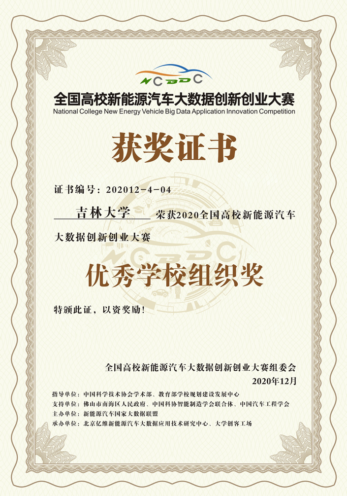 韦德1946体育官方入口今年首次有3支队伍闯入决赛。在决赛中经过激烈角逐,由闵海涛教授指导的赵雪淞、车禹剑、王昭懿、郭涵刚等研究生组成的“吉大新能源”团队和由袁新枚教授指导的路京雨、孟凡卓、姜静飞、谢子晗、张东雨等研究生组成的“413选A队”团队分别荣获创新组二等奖;由许楠副教授指导的孔岩、刘俏、谢雨、李潇汉、谢欢等研究生组成的“五自由度”团队荣获创业组二等奖。同时,韦德1946体育官方入口作为主要参赛高校之一,也荣获了优秀公司组织奖。