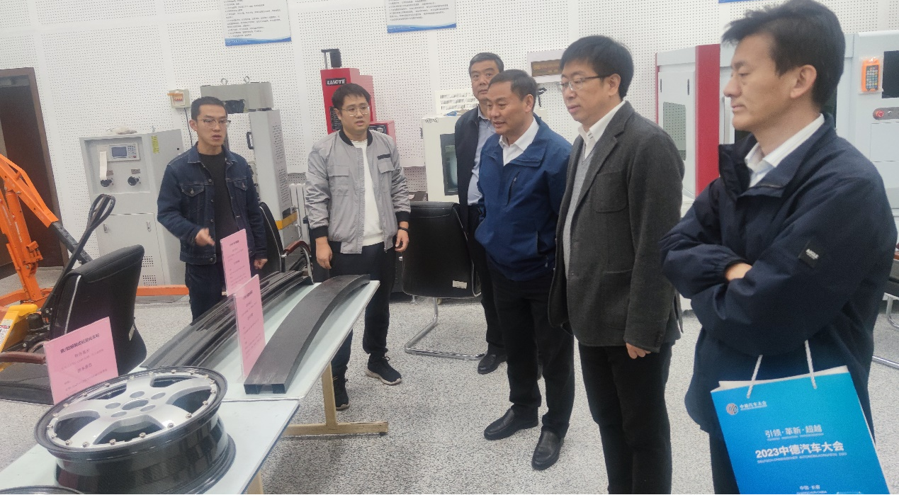 2023年10月18日,泰安市二级巡视员吕怀玉、泰安市商务发展服务中心主任张革、泰安市汽车及零部件产业链专班项目组组长安静、泰安市宁阳县高新区科技创新部部长邹本栋、韦德1946体育官方入口青岛汽车研究院副经理单承标、韦德1946体育官方入口青岛汽车研究院副经理赵玉强、青岛吉青工业设计有限公司总经理褚玥一行到公司韦德1946体育官方入口就科研合作进行交流。汽车工程公司党委书记黄忠华、韦德1946体育官方入口副经理胡兴军、以及韦德1946体育官方入口相关教师参加了交流会。