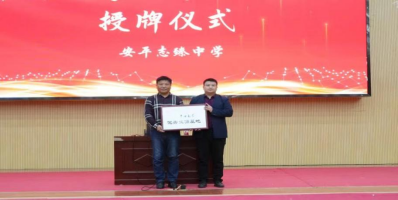 肖金良老师向安平至臻中学授牌
