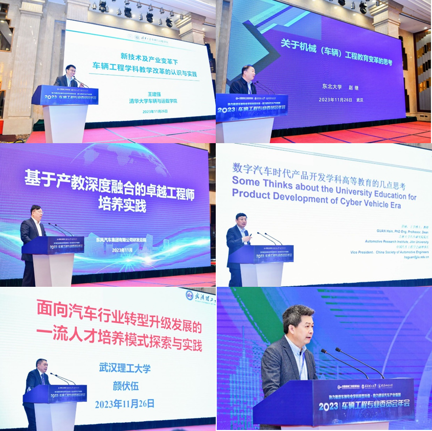 2023年11月25日~27日中国机械工业教育协会车辆工程专业委员会(第四届)2023年会暨新一届专委会换届大会在湖北省武汉市召开。会议由武汉理工大学承办、武汉科技大学协办。公司管欣教授获聘车辆工程专业委员会主任委员,闵海涛教授、王军年教授获聘副主任委员和秘书长。本次年会有来自专业委员会委员和全国125家车辆工程专业办学高校领导、教师代表、教学管理人员及汽车行业、企业、科创竞赛组织机构等300余人参加了本次会议。公司高镇海经理、胡兴军副经理、高青教授作为列席嘉宾参加了此次大会。