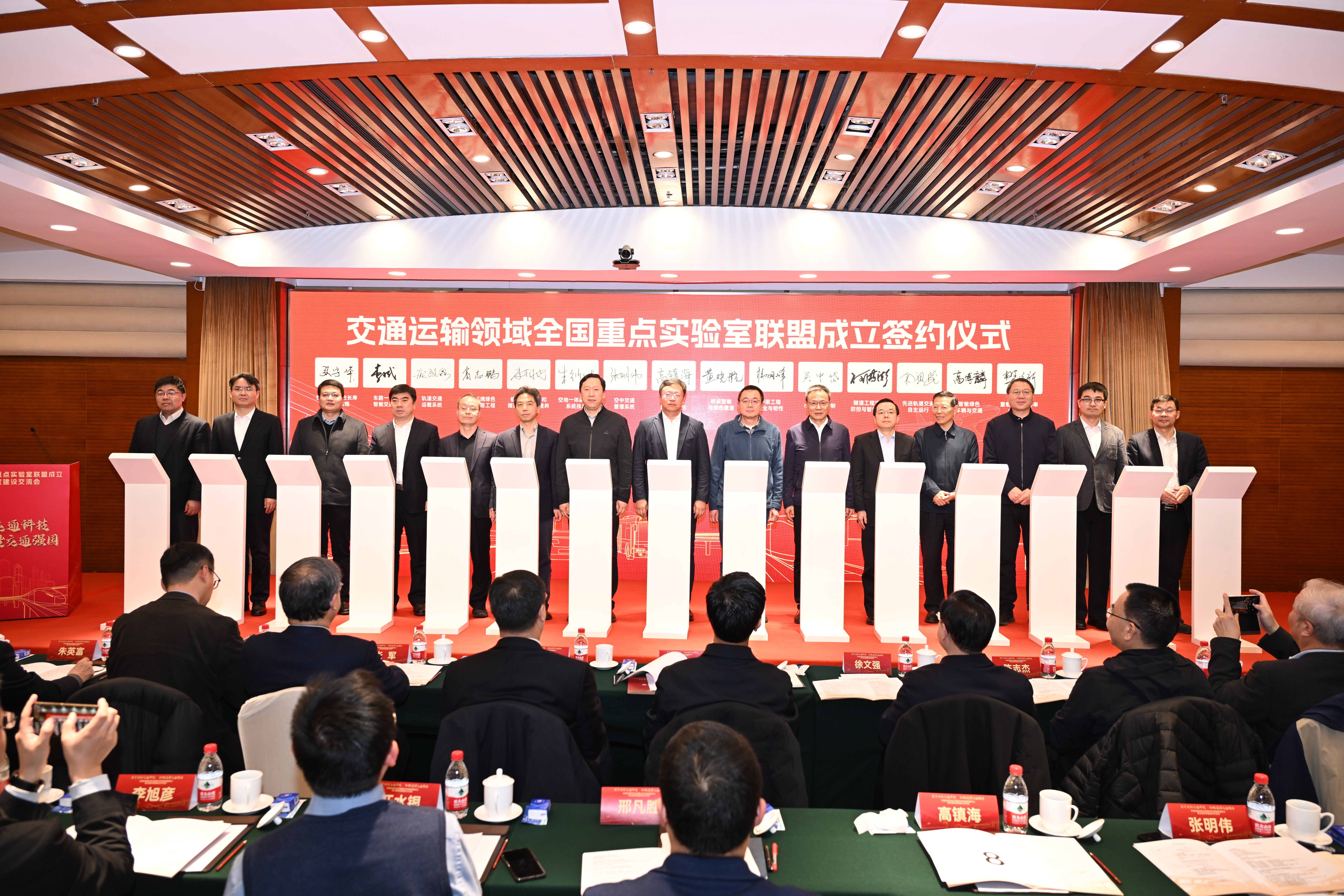 北京理工大学党委书记张军院士担任联盟首届理事长,北京航空航天大学董事长王云鹏院士担任联盟副理事长,水路交通控制全国重实验室主任严新平院士担任联盟副理事长并兼任首届秘书长。中国铁道学会理事长卢春房院士等13位两院院士受聘组成联盟指导委员会。公司汽车底盘集成与仿生全国重点实验室主任高镇海教授、副主任章新杰教授与主任助理胡宏宇教授参加了会议,高镇海教授当选为联盟理事,并代表实验室完成联盟组建签约。