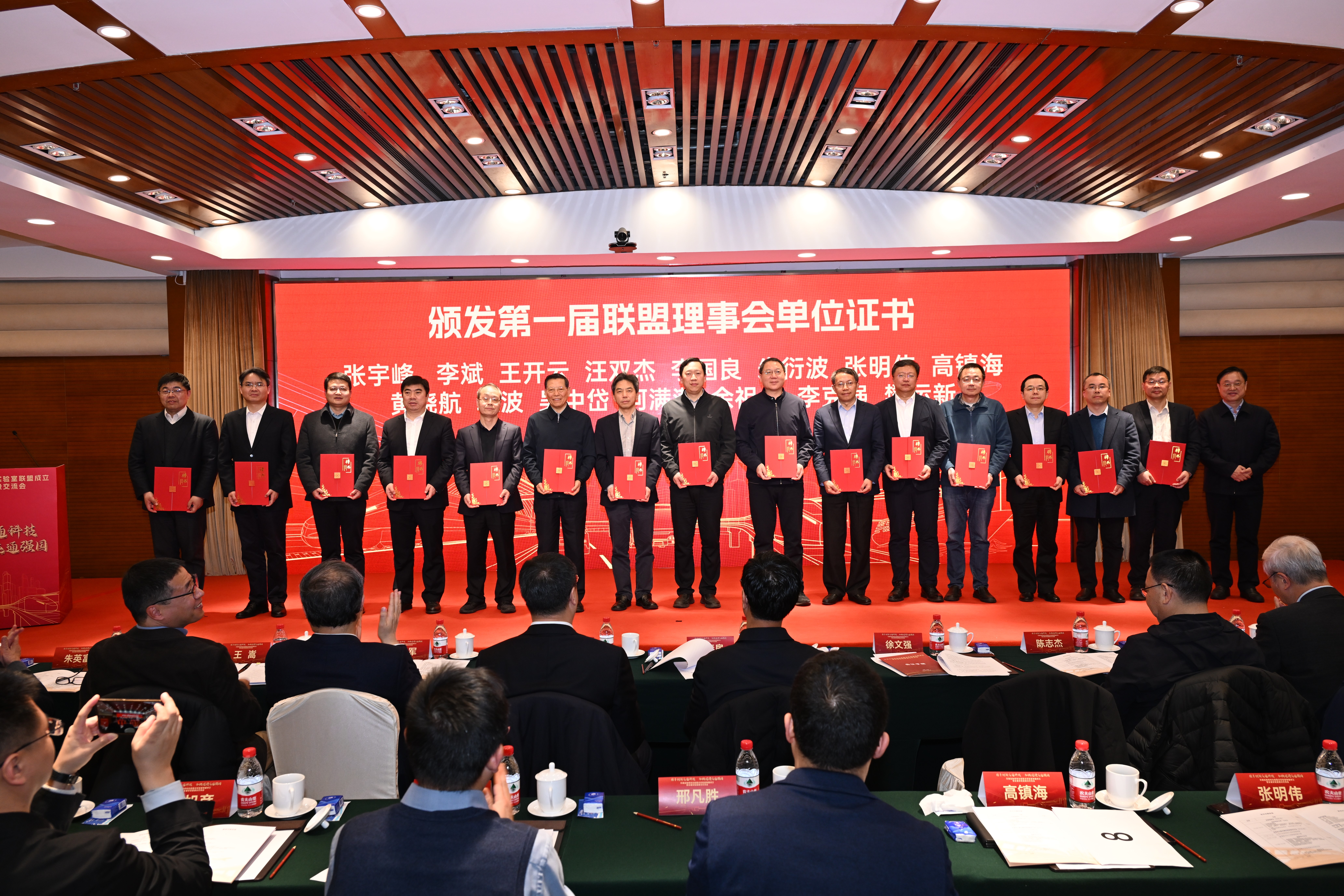 交通运输部党组成员、副部长王刚、科学技术部重大任务与实验室司王嵩副司长对联盟的成立和大会的召开表示热烈的祝贺,并为联盟理事长、副理事长、秘书长和指导委员会主任、副主任颁发了聘书。中国科公司何满潮、中国工程院朱英富、陈志杰、张军、吴光辉、郑健龙、卢春房、严新平、王云鹏、李克强、林鸣、何川等12位两位院士到场参会。