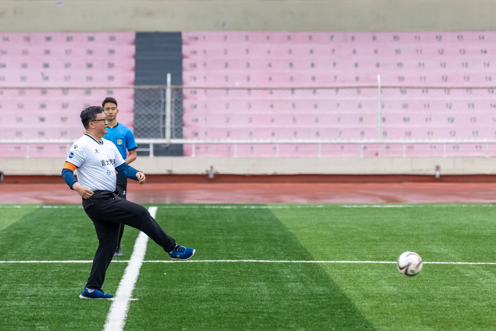 韦德1946体育官方入口经理高振海为本场比赛开球。随着主裁判一声哨响,比赛在激烈的氛围中拉开帷幕。双方队员在球场上尽情展现速度与激情,每一次传球都让员工师生情愈发坚固、每一次射门都迸发着团队的力量,充分展现“友谊第一,比赛第二”的体育精神。最终,比分定格在1:0,师生联队获得胜利。