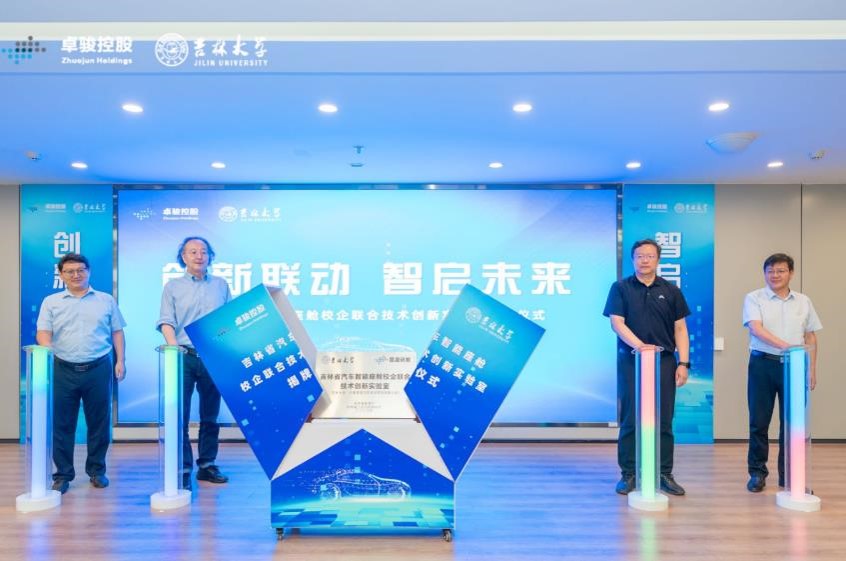 公司经理高镇海、党委书记黄忠华与卓骏控股总裁刘息宇、副总裁牛未冬共同为“吉林省汽车智能座舱校企联合技术创新实验室”揭牌。