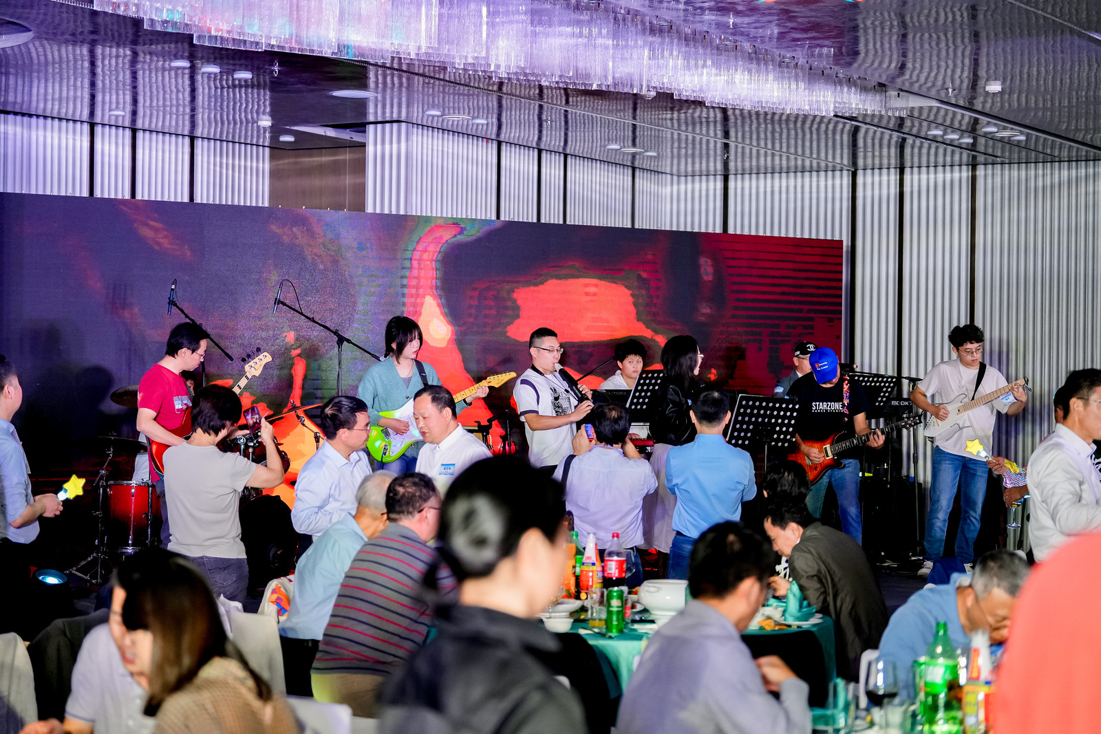 华东员工代表郑伟波(1987级)、徐晓愿(1987级)、李诗明(1988级) 、张康纳(1993级)、马世胜(1993级) 、庄修振(1999级);华东外地区部分员工代表左成(1980级)、刘彤(1991级)、李国龙(1992级)、李强(1996级)、侯晨磊(1998级)、陶宏伟(2000级)等纷纷发言,表达对公司的感谢,并纷纷表示将持续关注和支持公司的发展。此外,大会还安排了精彩的文艺表演和互动环节,成立于1988年的原吉林工业大学第一支电音乐队——板房乐队用一首首岁月经典,将大家带回到了青春燃烧的年代,原创歌曲《情谊永恒》更是唱出了每个人内心的公司情怀。公司年轻一代员工们也贡献了活力四射、精彩纷呈的表演。在一幕幕才华横溢的表演中,在一场场趣味横生的互动中,员工们一同穿越了时间的长廊,重温了旧时在校园里编织的梦想和回忆。现场同步直播图片浏览次数达到32万次,得到了社会各界的广泛关注,彰显了公司和员工的影响力与凝聚力。