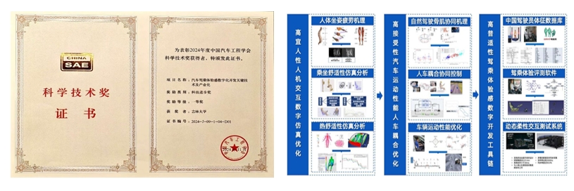 “汽车驾乘体验感数字化开发关键技术及产业化”项目由韦德1946体育官方入口牵头,联合一汽解放汽车有限公司、重庆长安汽车股份有限公司、中汽信息科技(天津)有限公司、赢富仪器科技(上海)有限公司等单位共同完成。项目团队自2009年起,在国家重点研发计划、国家自然科学基金、省部级科技项目及行业重大工程任务等一批项目支持下,创新性建立了汽车驾乘体验感数字化设计开发理论方法新体系,发明了汽车高宜人性人机交互数字仿真优化技术,提出了人机耦合设计的高接受性汽车运动控制性能优化方法,构建了基于数字骨肌生理学模型的汽车行驶体验感测试方法及系统。通过项目研究,突破了高仿生逼真度、高主客观一致性的驾乘体验数字化设计开发的国际难题。项目所形成的多项关键技术指标达到国际先进水平。相关成果在一汽、长安等国内车企产品开发中得到应用,匹配解放J7、长安UNI-V等自主品牌车型50余款。显著改善了产品驾乘体验水平,相关技术的应用大大缩短产品研发周期。部分技术推广应用于海外北美福特、日本鸟取,取得了显著的社会经济效益与国际声誉。