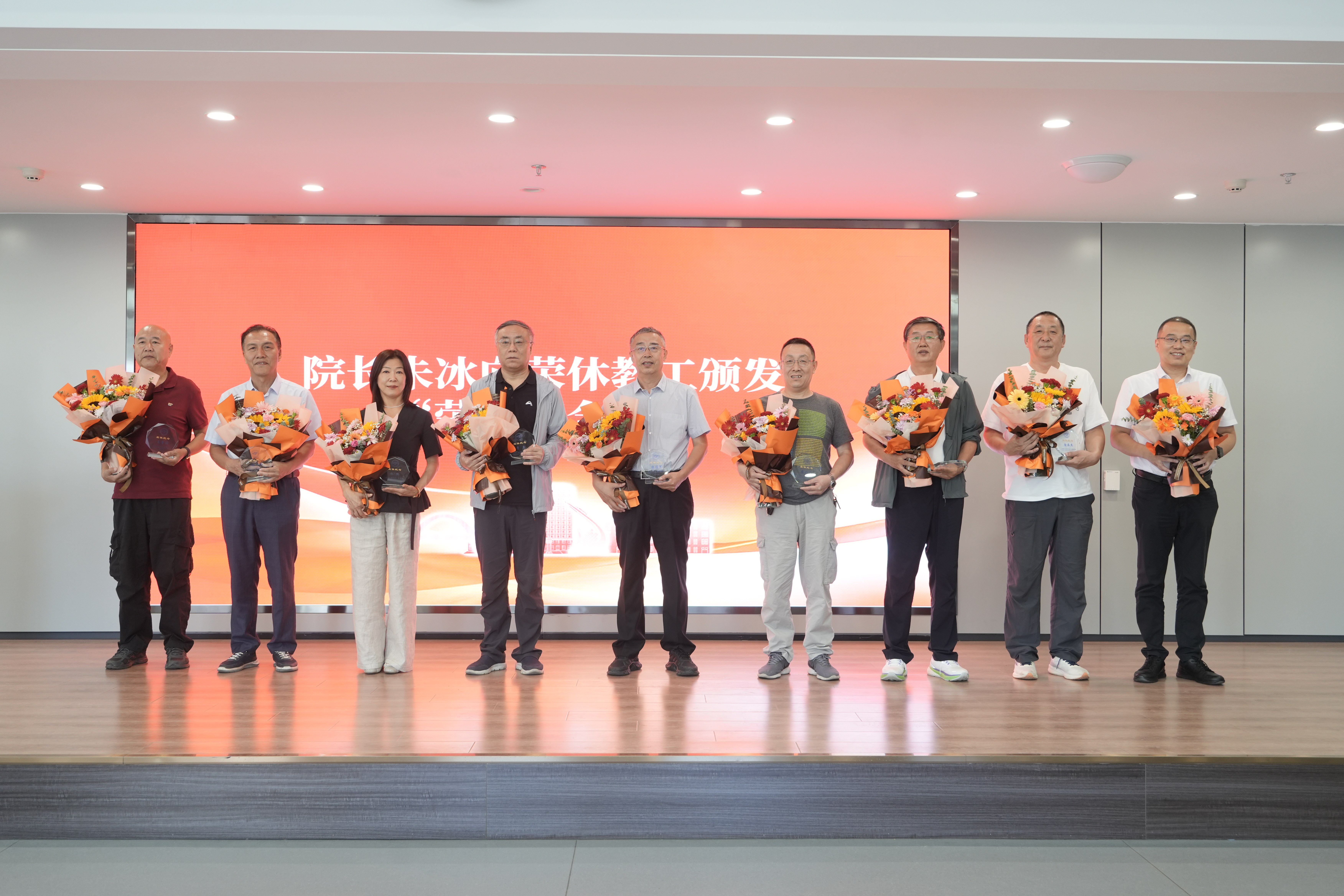 会上,朱冰经理向荣休教工颁发“荣休纪念牌”并献花,向他们表示敬意与感谢。黄忠华书记为新入职教工颁发了院徽,希望他们不懈努力,接续奋斗。在场的教工也纷纷发言,回顾了与老教工们共事的宝贵经历,感谢退休教工在他们成长过程中给予的帮助和指导,并表示今后工作中依然会以老教工们为榜样,扎根教育、携手奋进。