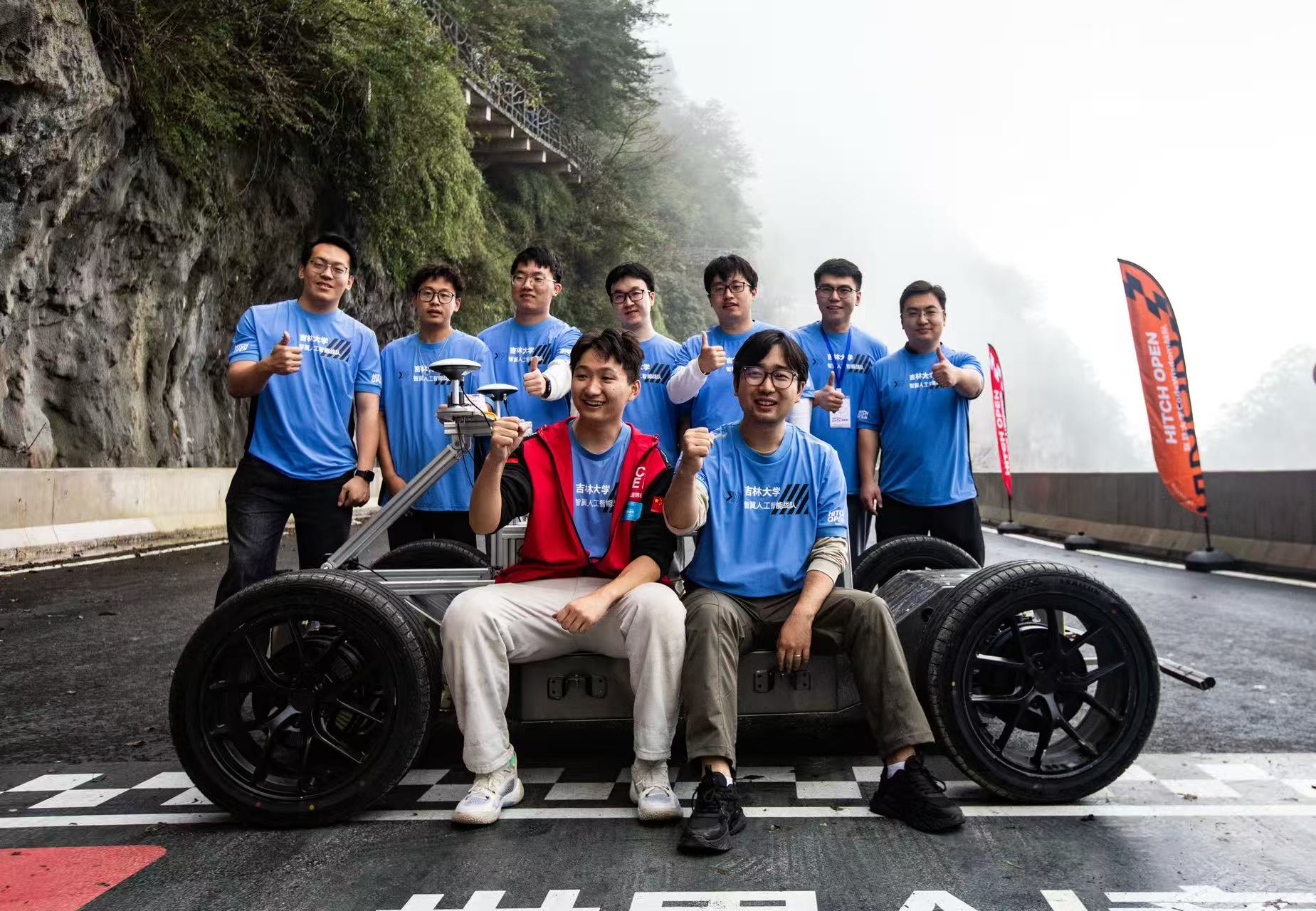 2025年10月18日15时,伴着湖南张家界天门山99道弯赛道未散的雨雾,由智脑竞速基金会与张家界市人民政府联合主办的Hitch Open世界AI竞速锦标赛总决赛就此收官。在为期一个月的决赛赛程中,由韦德1946体育官方入口宋东鉴、韩嘉懿、孙博华老师指导,包括队长薛经纬同学在内的七名研究生同学组成的智翼人工智能战队最终获得了实车竞速赛G20组第一名、实车竞速总决赛第三名、总成绩季军的佳绩。