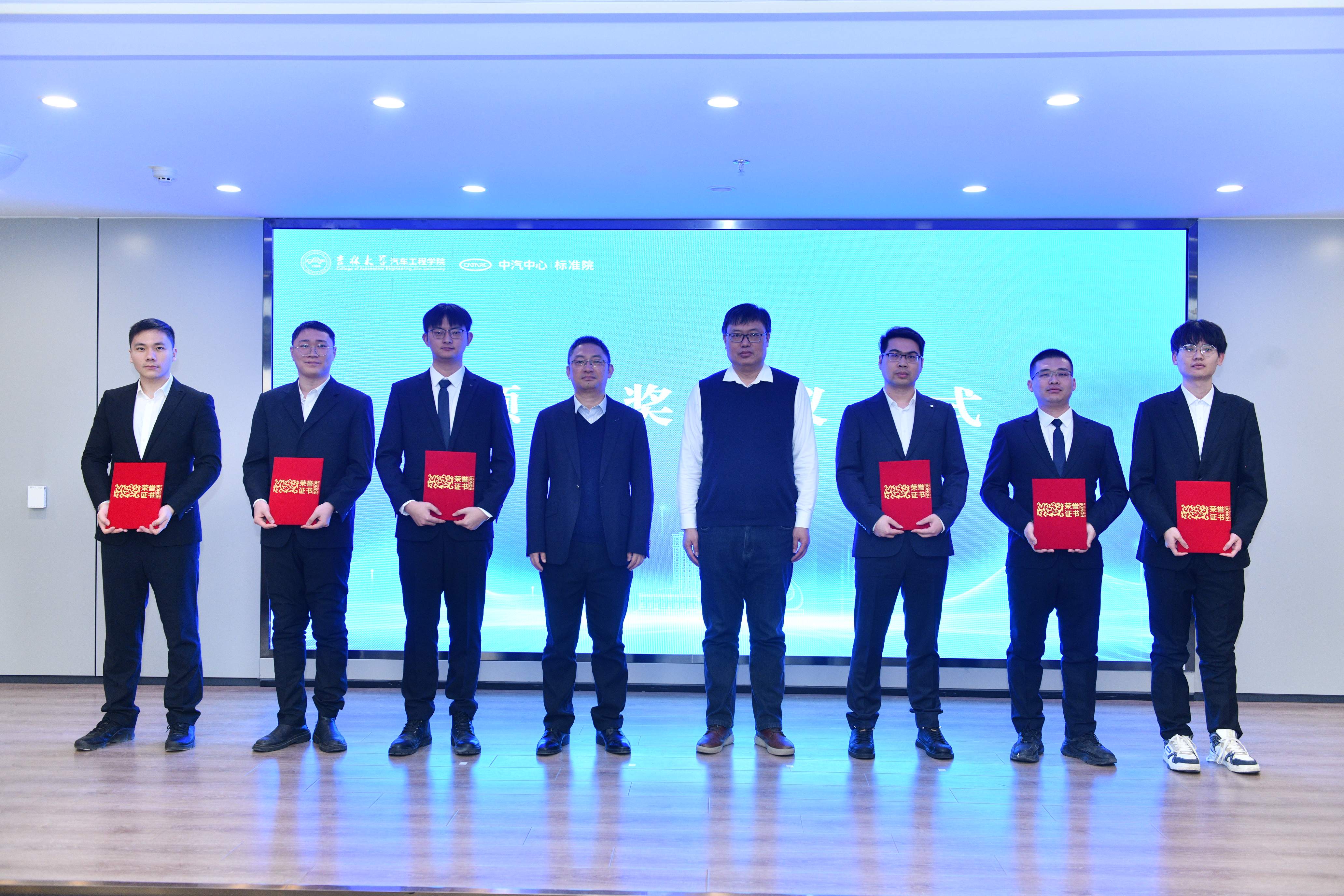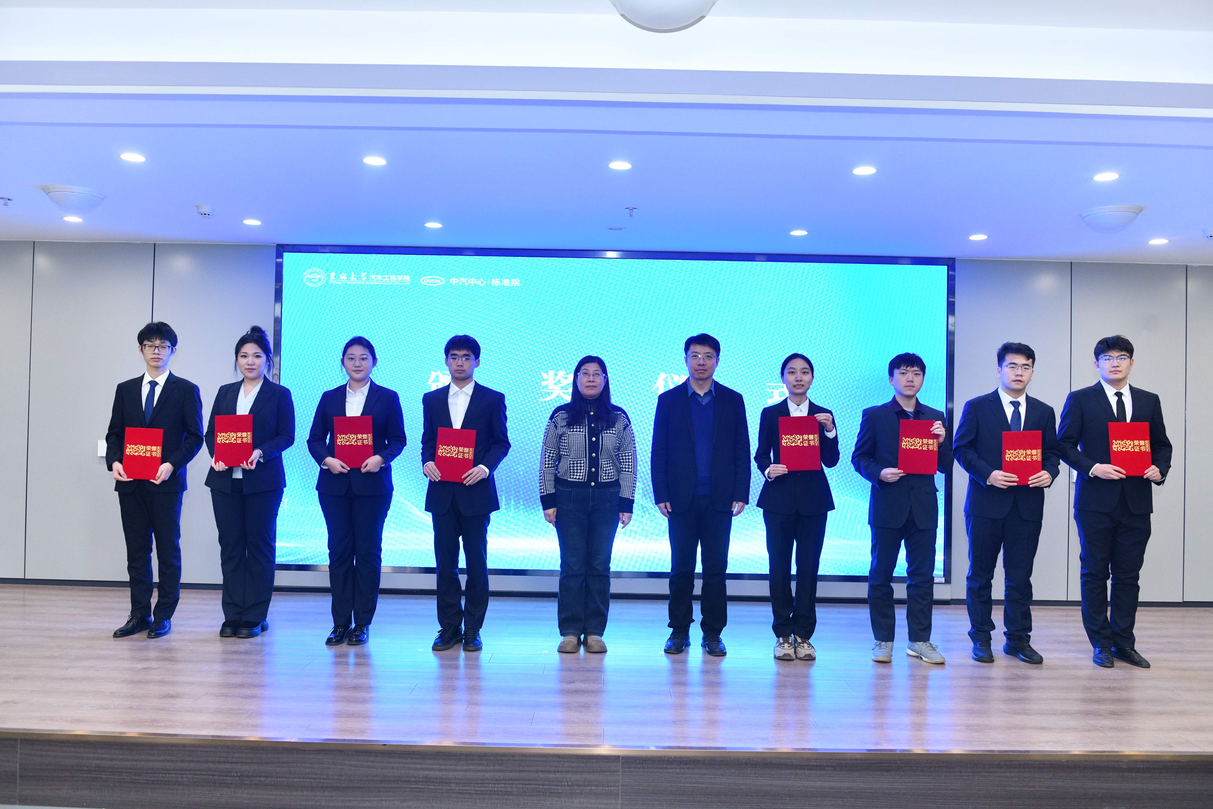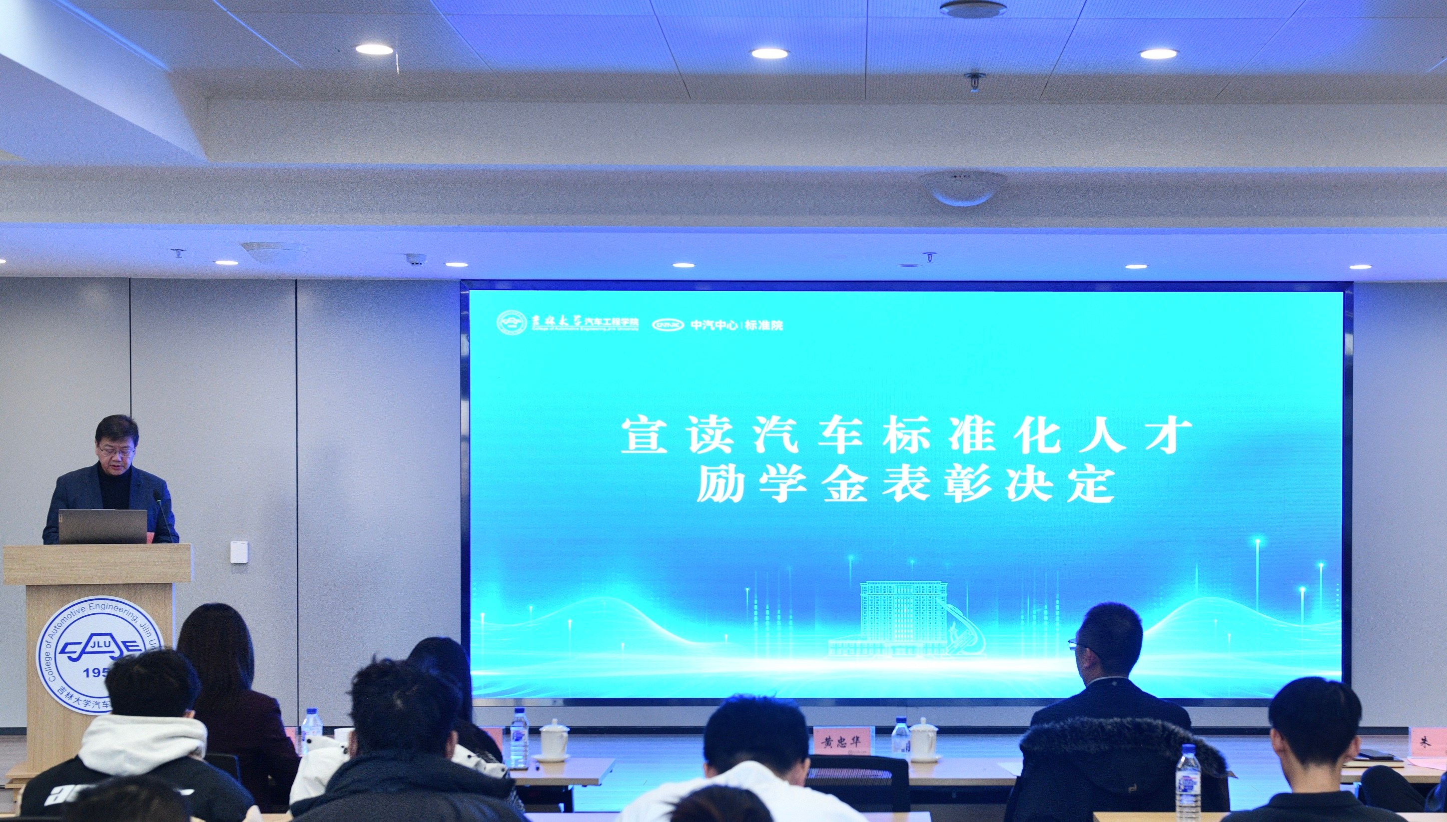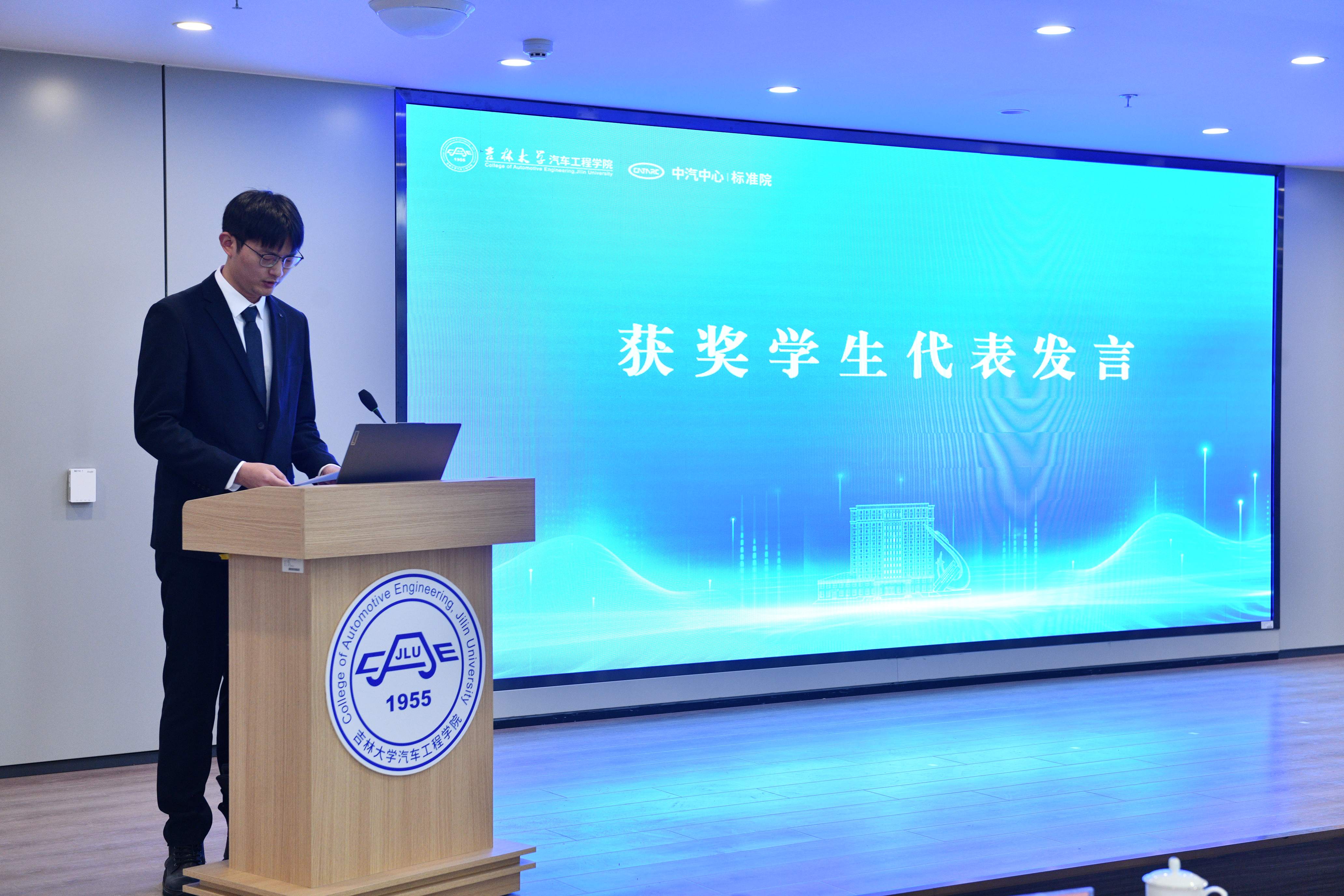 汽车工程公司党委书记黄忠华宣读“汽车标准化人才励学金”表彰决定,对获奖同学表示祝贺,希望同学们深耕专业领域,关注产业发展,为振兴中国汽车工业而努力奋斗。