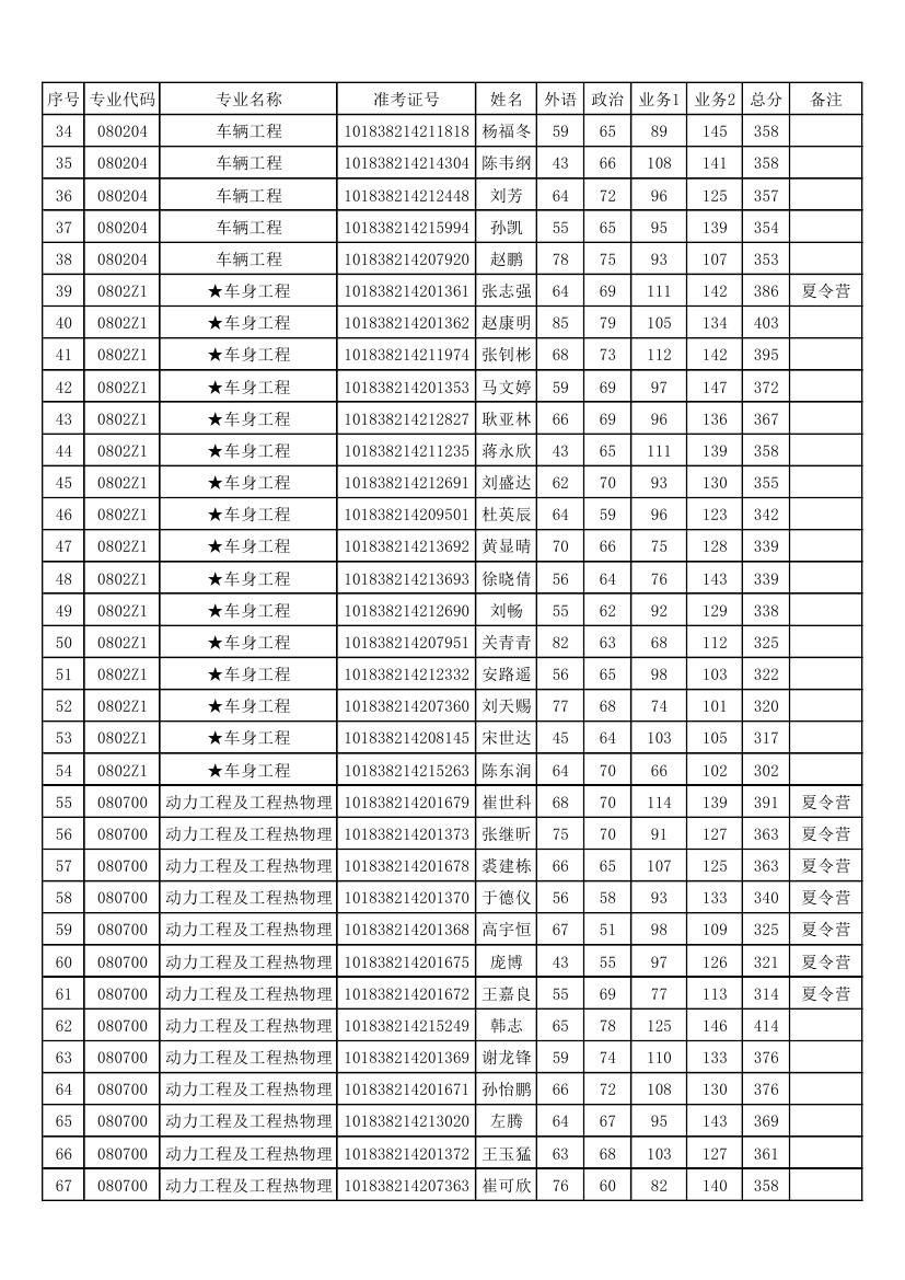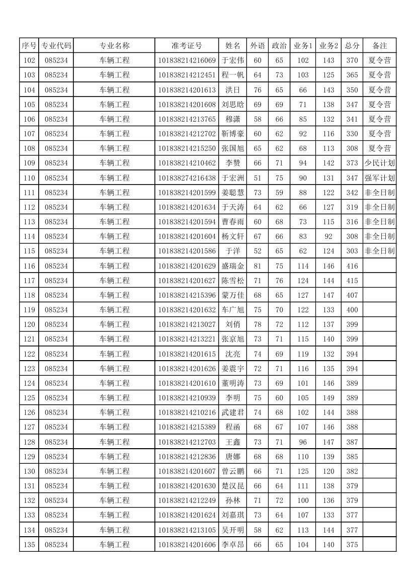 2018年硕士研究生招生复试名单(不含调剂生)