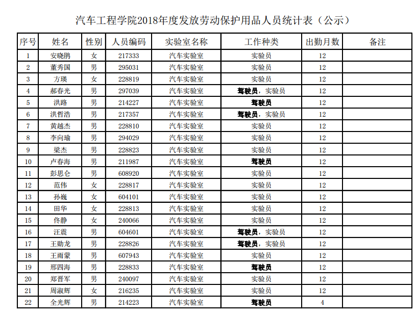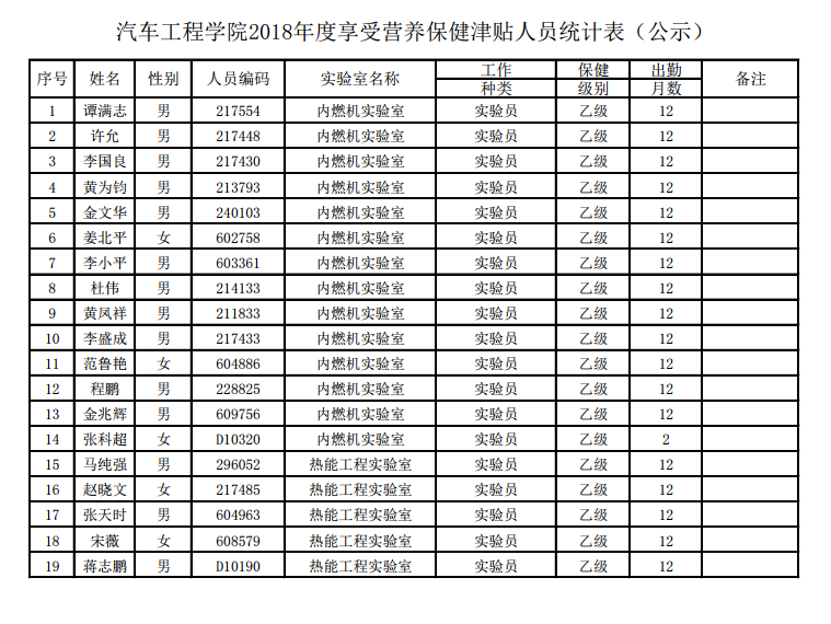 根据《关于开展2018年度公司劳动保护用品和营养保健津贴统计发放工作的通知》(实管函〔2019〕15号)有关精神,现对公司2018年度发放劳动保护用品以及营养保健津贴人员名单进行公示,公示日期:2019年5月30日至2019年6月1日。公示期内如有异议,请联系公司科研与实验室管理办公室,联系人:陈雪梅,联系电话:85095833,电子邮箱:xuemei@jlu.edu.cn。
