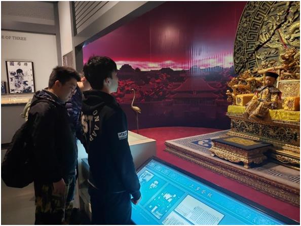 寻访团成员首先在讲解员的引导下深入参观了同德殿、怀远楼等几个伪皇宫内主要的政务娱乐场所,并进入了溥仪陈列馆详细了解了末代皇帝溥仪从皇帝到公民的曲折一生。随后进入辑熙楼、畅春轩和植秀轩,了解了溥仪家人居住和溥仪进行学习的环境。最后来到室外依次参观了东御花园、防空洞、建国神庙遗址、西御花园和马场。参观全程寻访团成员兴趣浓厚,纷纷交流各自见解。
