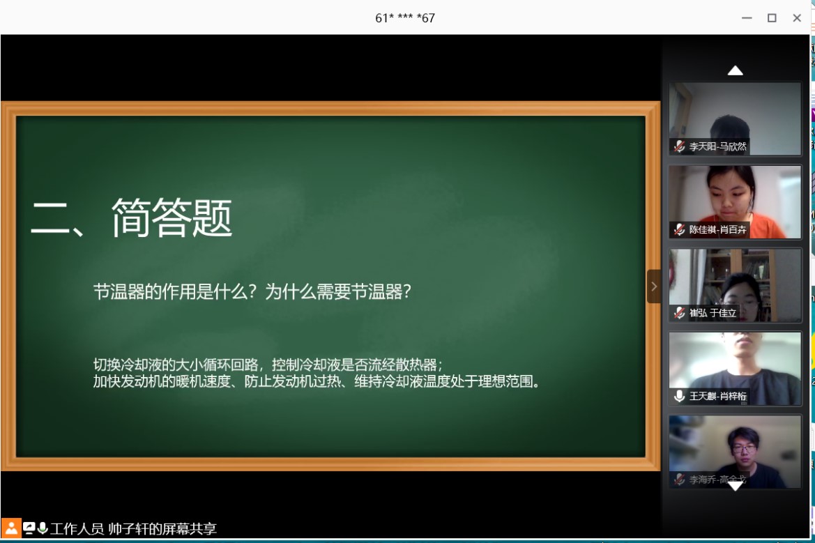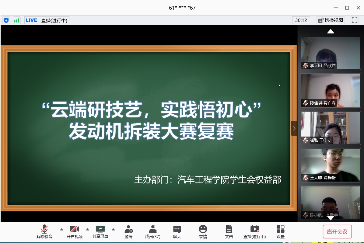 为了提升韦德1946体育官方入口员工的专业素养,进一步考察晋级复赛八支队伍的专业知识水平,韦德1946体育官方入口员工会于2020年5月24日通过软件“腾讯会议”,在线上举办了汽车发动机拆装大赛复赛。员工车队指导教师王达老师以指导教师身份出席复赛。