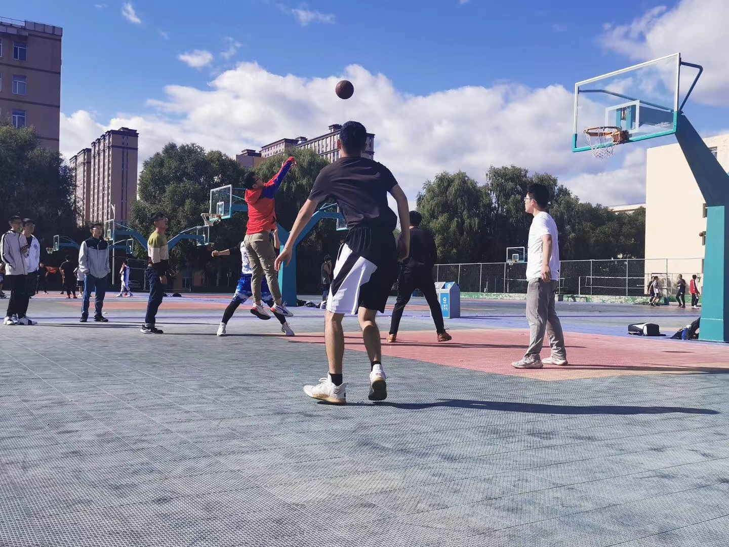 篮球赛分在四天内举行,今天的比赛是整个赛程的第一部分,分两轮进行,每个队伍的实力都不容小觑。虽然只是3v3半场的比赛,各位队员的斗志都十分高昂,随时都有剑拔弩张之势。比赛过程中,各位队员全力以赴,积极进攻又兼顾防守,越战越勇,展现出高超的篮球技术和默契的团队配合意识,让在场的观众赞叹不已。